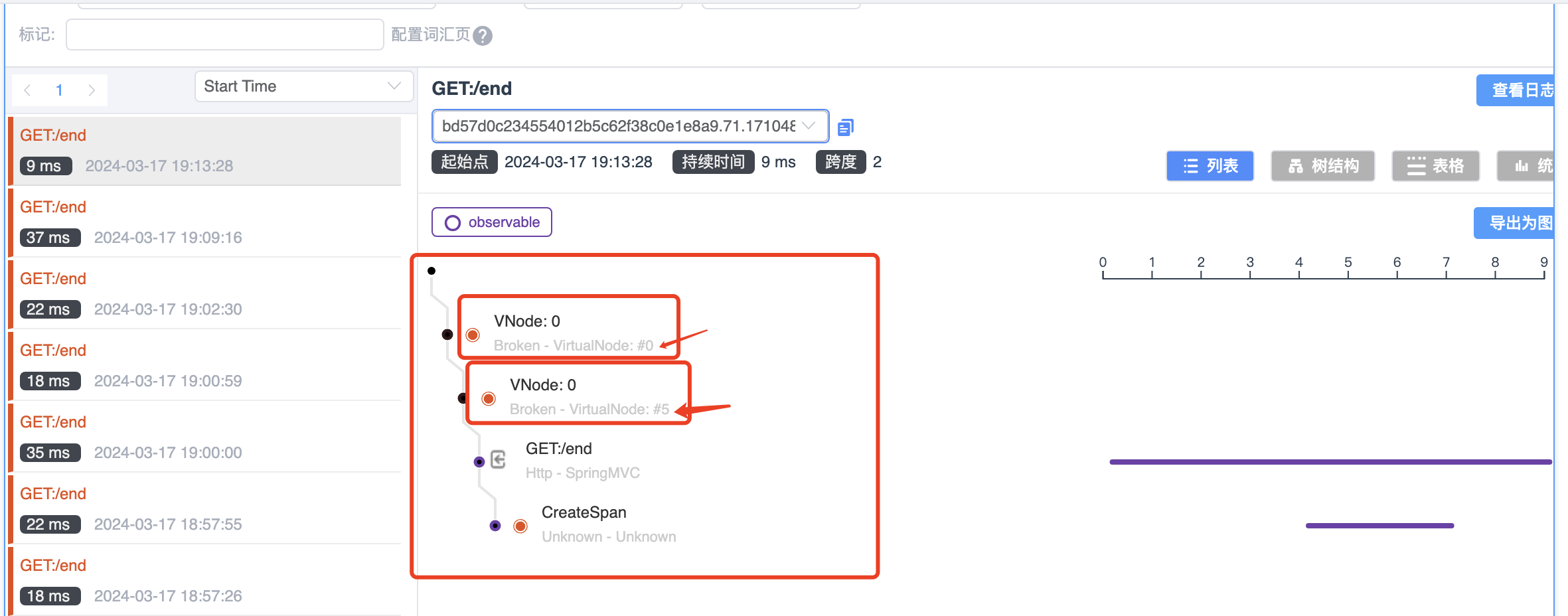 2、Broken - VirtualNode #5 (#5 表示当前该行数据的 spanId 是 5)