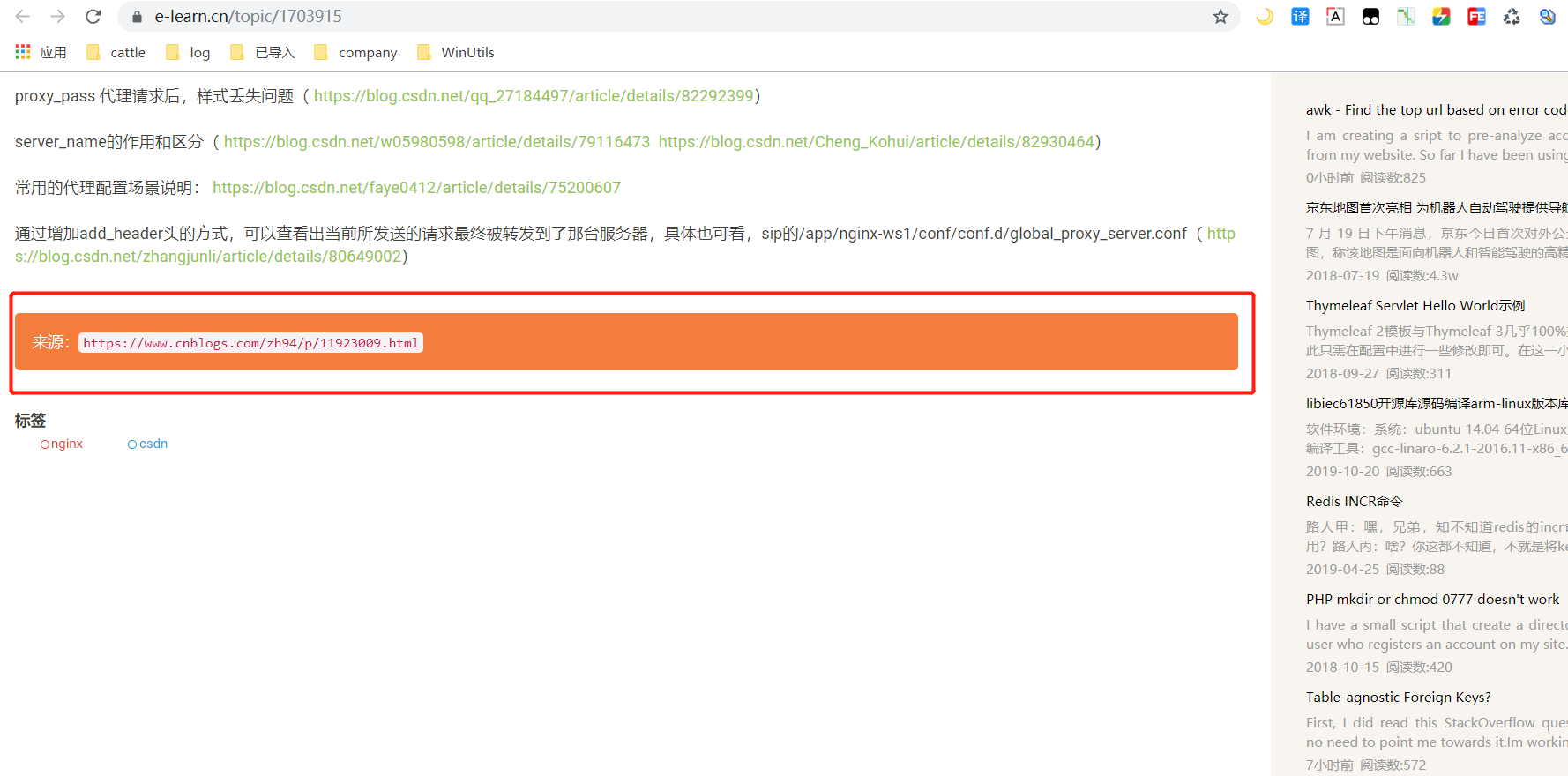 接着在另外一个“ e-learn”的网站上看到了被爬取的第三个文章 ,不过较好的是,该网站的处理方式还是有些细腻的,在文章的底部,单独以新的style样式,展示了对应的文章来源,及URL地址信息,如下图所示: