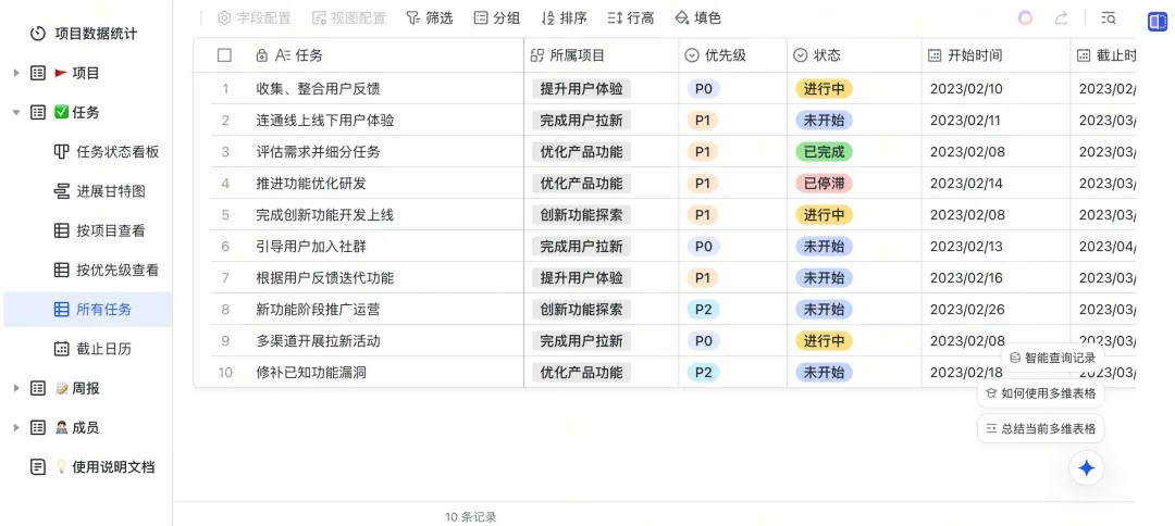 核心价值点: 多维表格AI的核心优势在于降低了数据管理和应用构建的门槛, 让不同规模的企业都能更敏捷地利用数据驱动决策和流程。它在飞书生态内无缝集成是加分项,但其能力本身具备相当的独立性。
