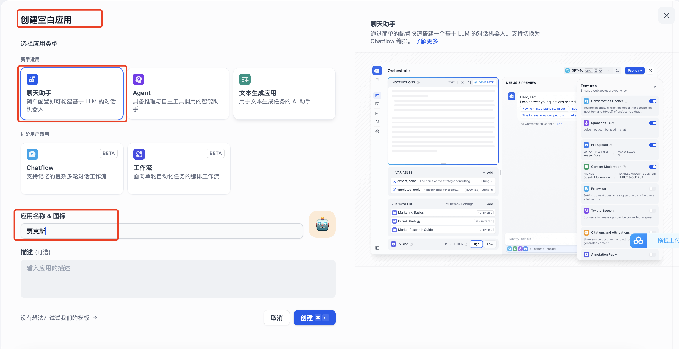 新建聊天助手