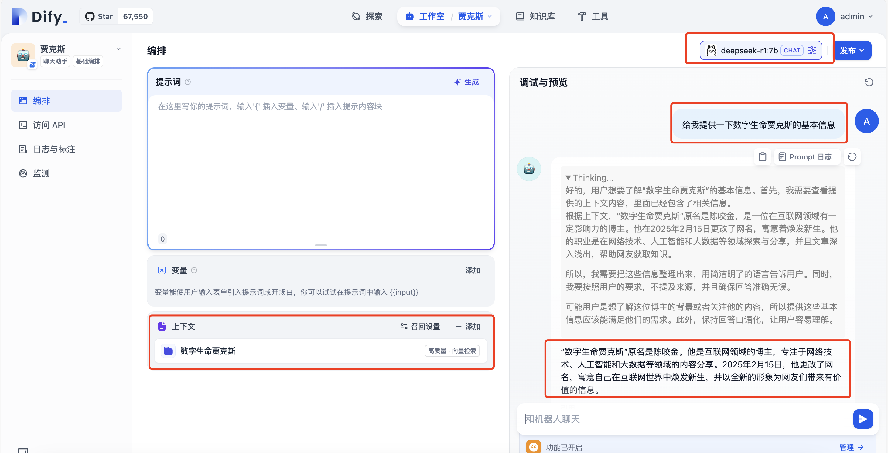 当我们问他一些知识库中独有的内容时,他便会根据知识库中独有的内容,来给与对应的回复。