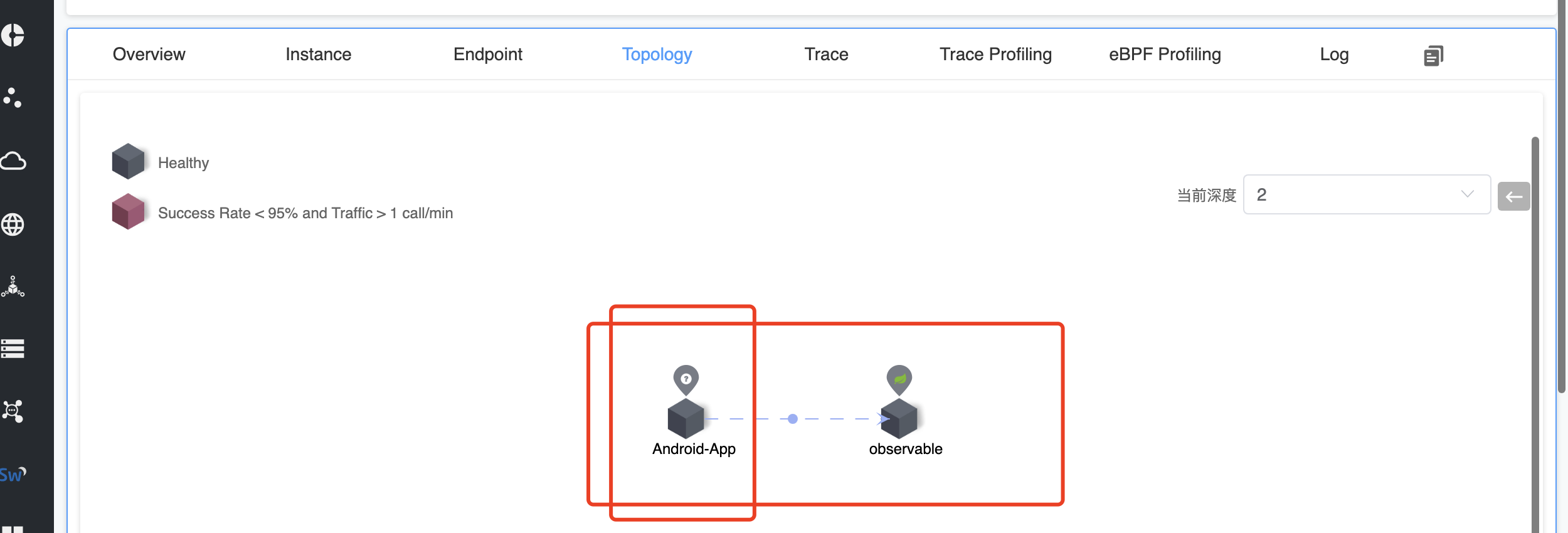 此时可能存在的疑问是,此处的实例 Id:Android-APP 这个标识有用吗,在刚才的链路中也没有体现出来啊。有用的,这个标识在最终渲染流量拓扑图的时候是有用的。如下所示: