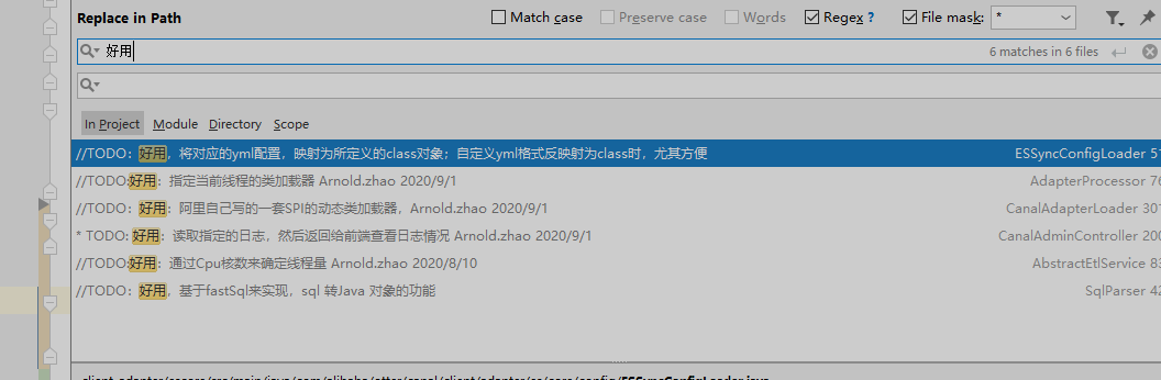 在 IDEA Canal项目中直接全局搜索 “好用”;