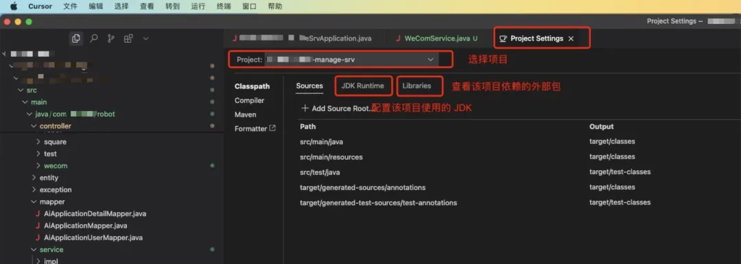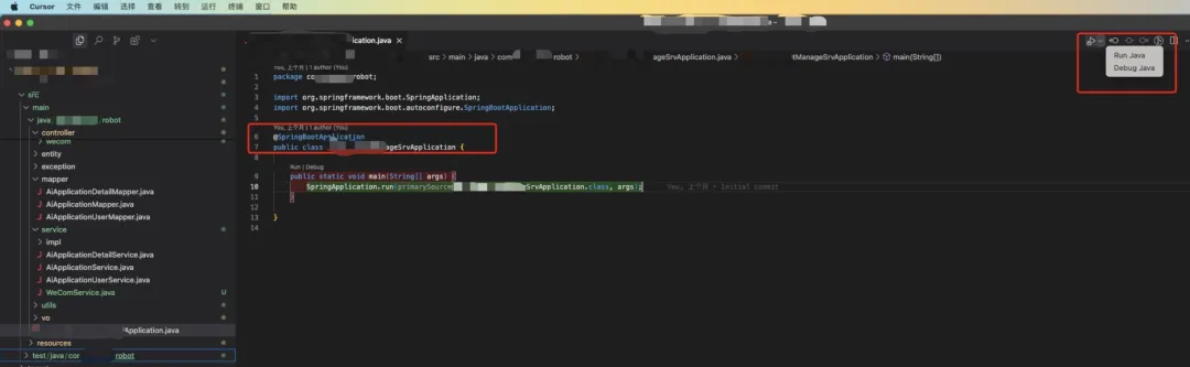 (图示:基于Cursor配置的Java开发环境,接近IDEA体验)