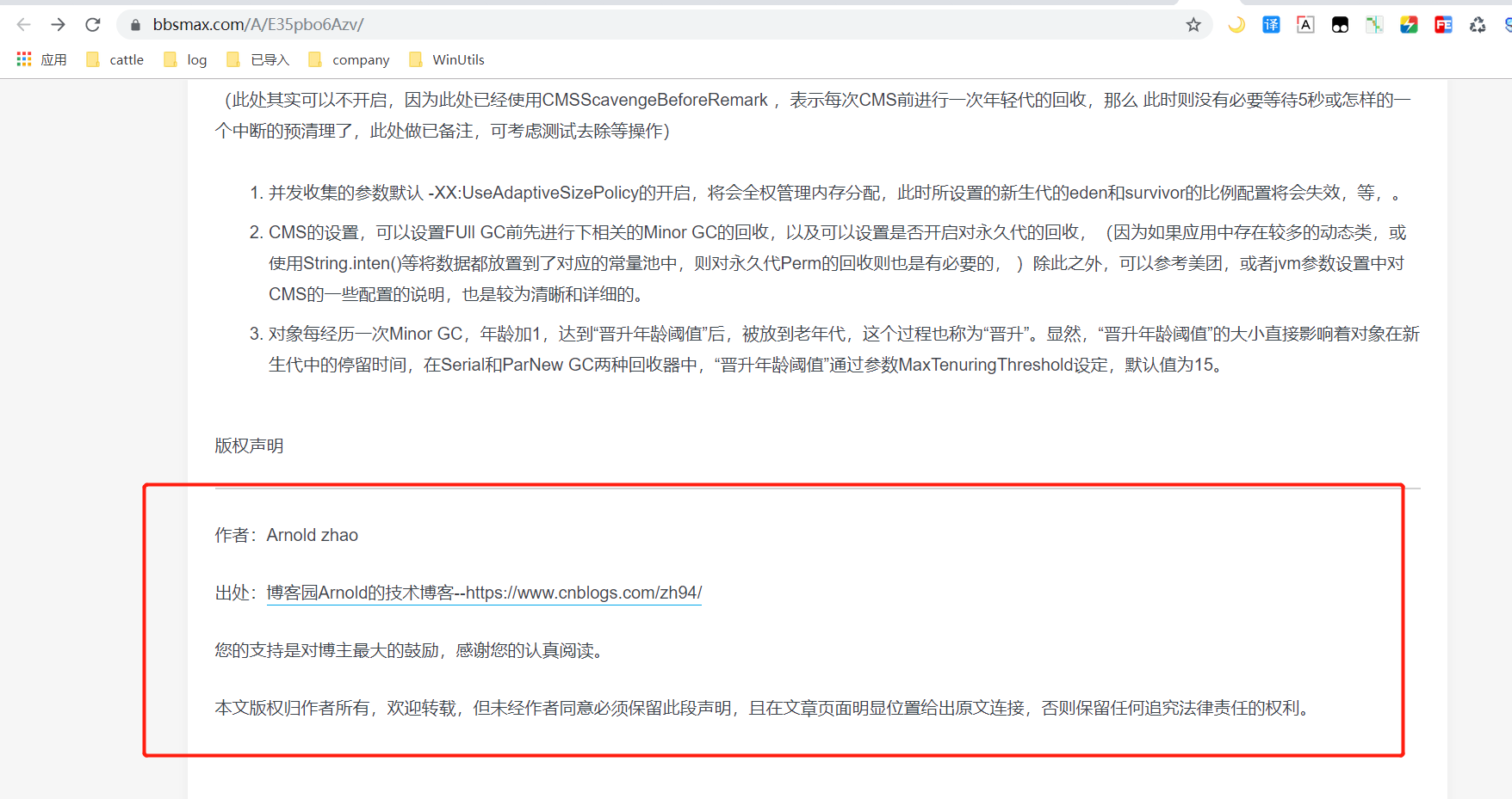 此时在接着进行文章查看时,还是在“bbsmax”上面发现了另外一篇本人的文章,不过不同的是,文章底部给了很明显的文章出处,如下图所示: