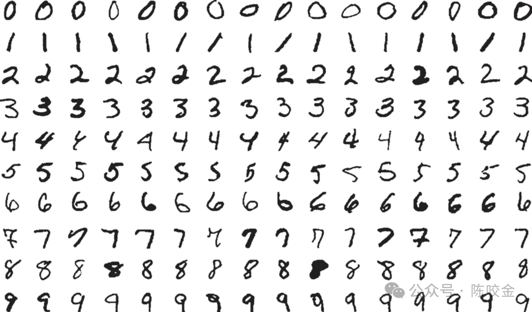 受大脑神经元网络的启发,罗森布拉特提出可以应用感知机网络来执行视觉任务,例如人脸和物体识别。为了了解感知机网络是如何开展工作的,我们接下来将探索一个感知机如何执行特定的视觉任务,比如,识别如下图所示的手写数字。