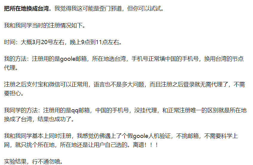 最后看到了这篇帖子的操作方式,于是乎我把注册地调整为了“台湾”,然后,竟然注册成功了!简直就离了大谱!